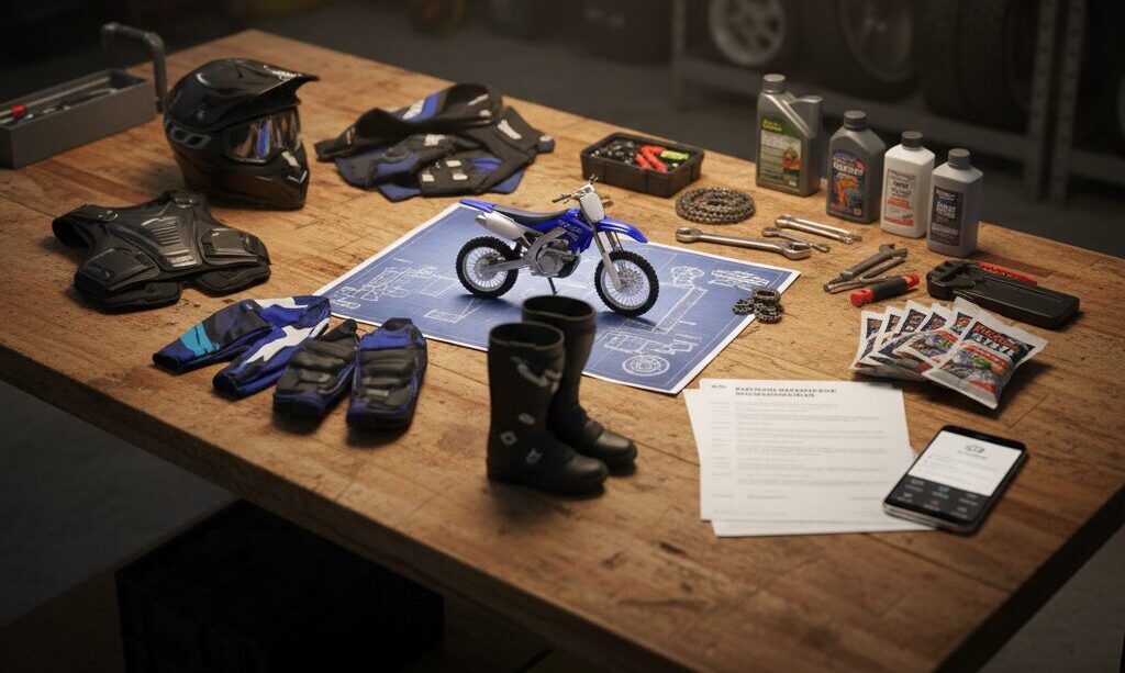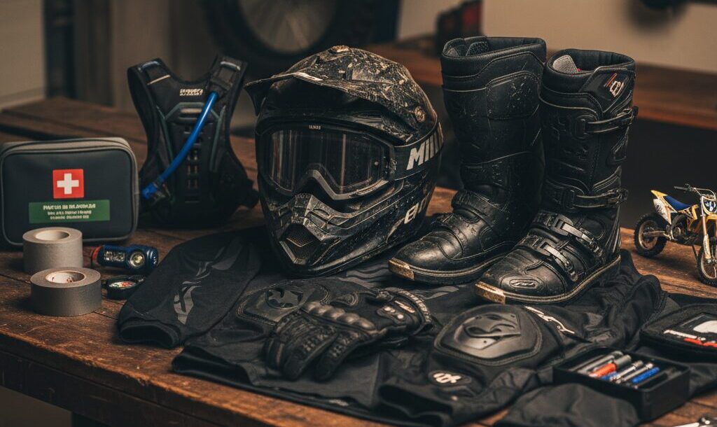 エンデューロをはじめるにあたり、自分を守る装備とバイクを守る装備の両方が必要となります。